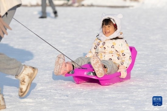 11月9日,小朋友在哈爾濱建筑藝術(shù)廣場上游玩。