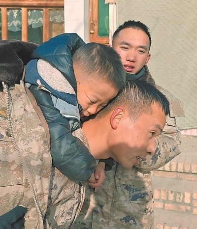 12月19日,西部戰(zhàn)區(qū)第76集團軍某旅在積石山縣大河家鎮(zhèn)陳家小學展開救援。馮彥榮攝(新華社發(fā))
