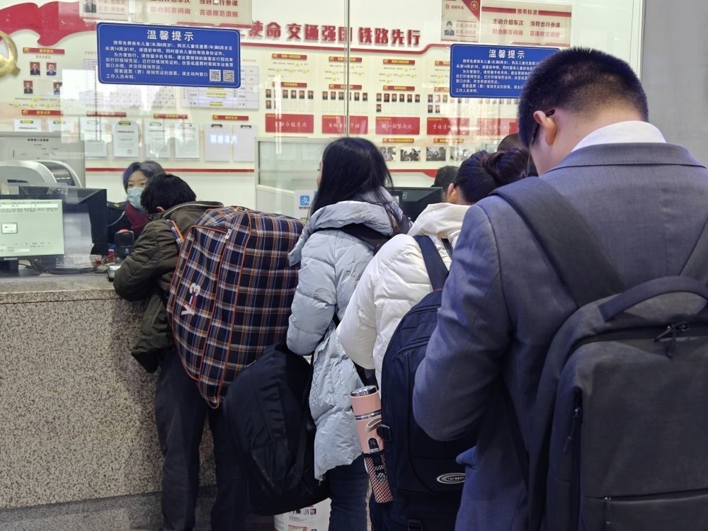 1月17日,在成都東站,旅客正在窗口購(gòu)票。新華社記者 謝佼 攝