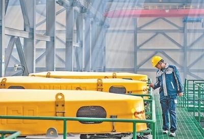 青海鹽湖工業(yè)股份有限公司鉀肥分公司加工車(chē)間內(nèi),工人在巡檢鉀肥生產(chǎn)狀況。潘彬彬攝(新華社發(fā))