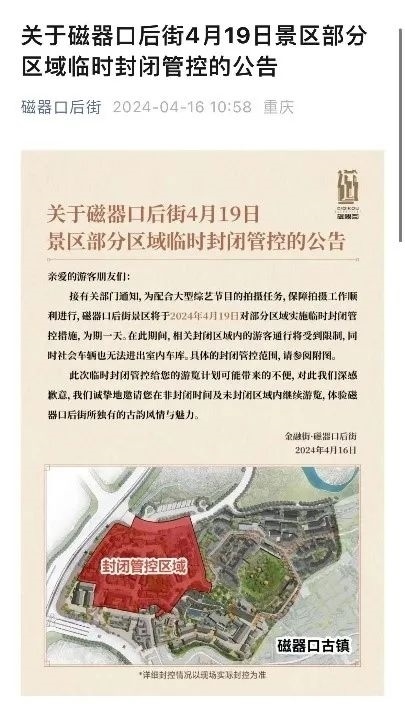 磁器口后街景區(qū)臨時封閉公告