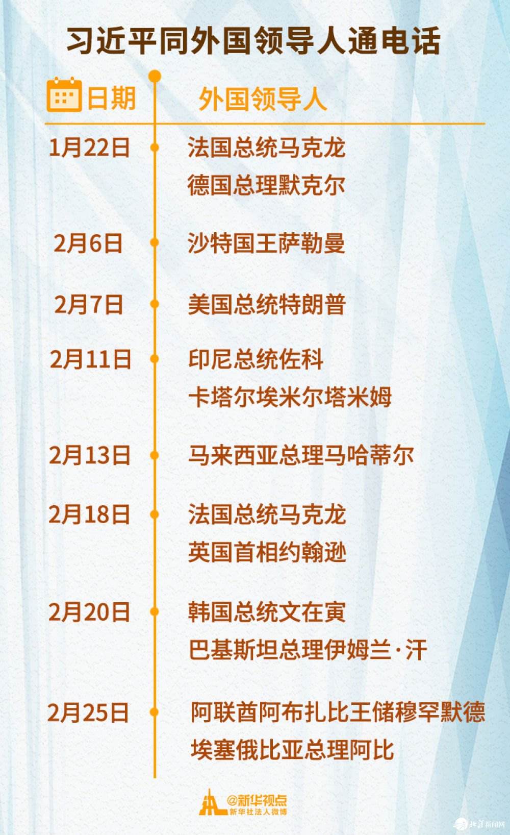 2月以來,習近平主席已先后同11位外國領導人通電話,涉及國家遍及亞洲、歐洲、非洲、美洲等地區(qū)。