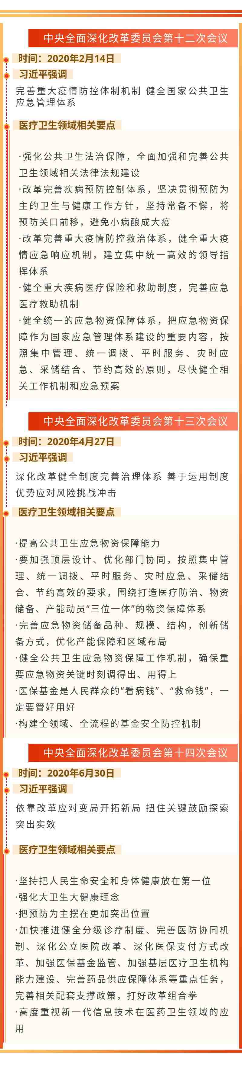 醫(yī)療保障制度和體系,是中央深改委會議長期關(guān)注的內(nèi)容。新冠肺炎疫情來襲后,中央針對因疫情暴露出來的醫(yī)療衛(wèi)生體系的短板和不足,立足當前、放眼長遠,圍繞這一重大改革主題,作了出全面動員、全面部署。