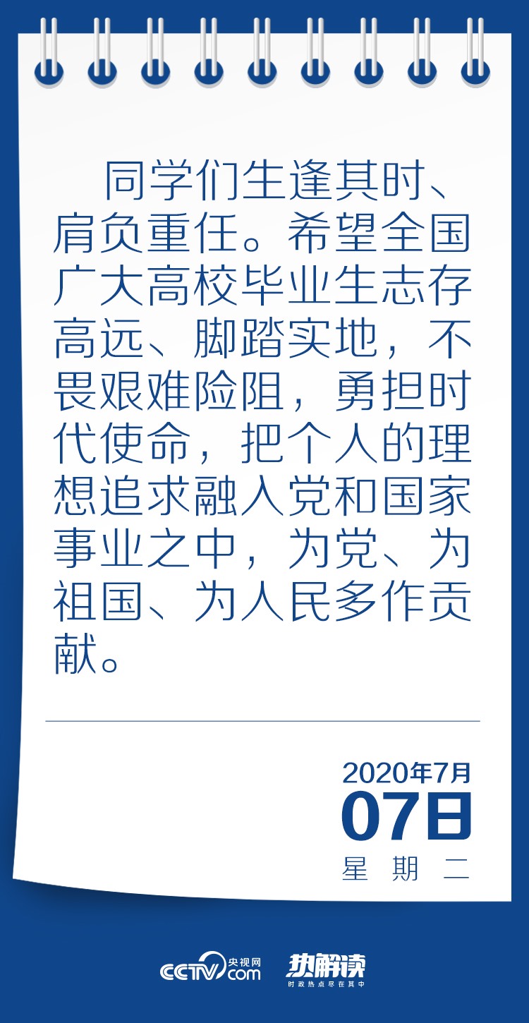 習近平總書記在回信中高度肯定了同學們到邊疆基層工作的選擇,并對廣大高校畢業(yè)生提出殷切期望:“希望全國廣大高校畢業(yè)生志存高遠、腳踏實地,不畏艱難險阻,勇?lián)鷷r代使命,把個人的理想追求融入黨和國家事業(yè)之中,為黨、為祖國、為人民多作貢獻?!?/p>