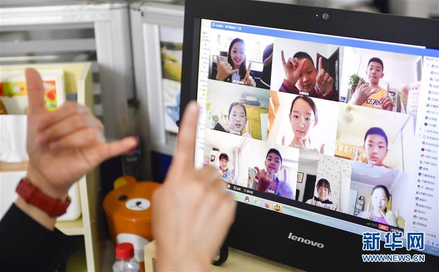位于吉林省長春市的東北師范大學第二附屬小學6年級學生參加“云班會”(5月29日攝)。新華社記者許暢攝