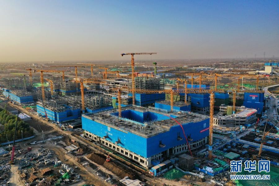 這是11月6日拍攝的河北雄安新區(qū)商務服務中心建設現(xiàn)場(無人機照片)。新華社記者 牟宇 攝
