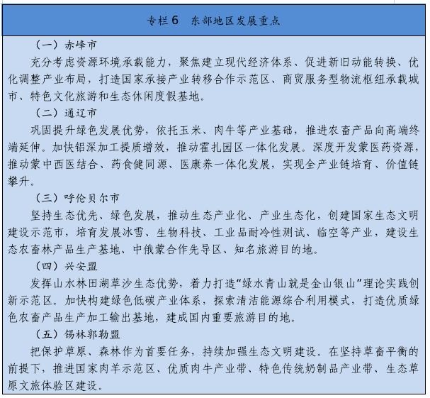 經(jīng)濟發(fā)展基礎(chǔ)更加穩(wěn)固。地區(qū)生產(chǎn)總值年均增長4.3%,人均地區(qū)生產(chǎn)總值突破1萬美元,常住人口城鎮(zhèn)化率達到64.1%。能源和戰(zhàn)略資源基地得到提升,煤炭產(chǎn)能、外運量、發(fā)電量和外送電量均居全國首位,可再生能源裝機占比達到36.1%,稀土原材料就地轉(zhuǎn)化率達到75%,稀土功能材料及終端應(yīng)用產(chǎn)品占比達到53.6%。農(nóng)畜產(chǎn)品生產(chǎn)基地更加鞏固,糧食和畜牧生產(chǎn)連豐連穩(wěn),農(nóng)畜產(chǎn)品加工轉(zhuǎn)化率達到65%,形成2個千億級、9個百億級農(nóng)牧業(yè)主導(dǎo)產(chǎn)業(yè)。數(shù)字經(jīng)濟、會展經(jīng)濟、商貿(mào)物流、現(xiàn)代金融等加快發(fā)展。