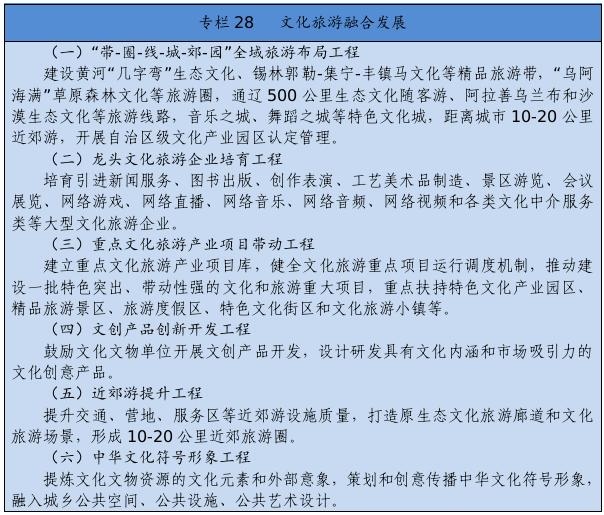 深化文化體制改革,加強文化市場體系建設(shè),實施文化產(chǎn)業(yè)數(shù)字化戰(zhàn)略,推動文化和旅游融合發(fā)展,提高文化產(chǎn)業(yè)競爭力。