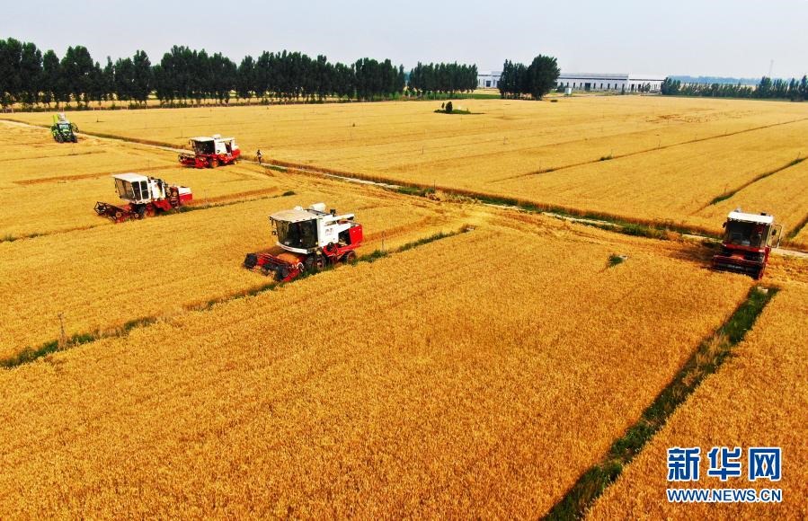 河北省灤州市灤城街道鄒家洼村村民在收獲小麥(2020年6月18日攝)。新華社記者 牟宇 攝