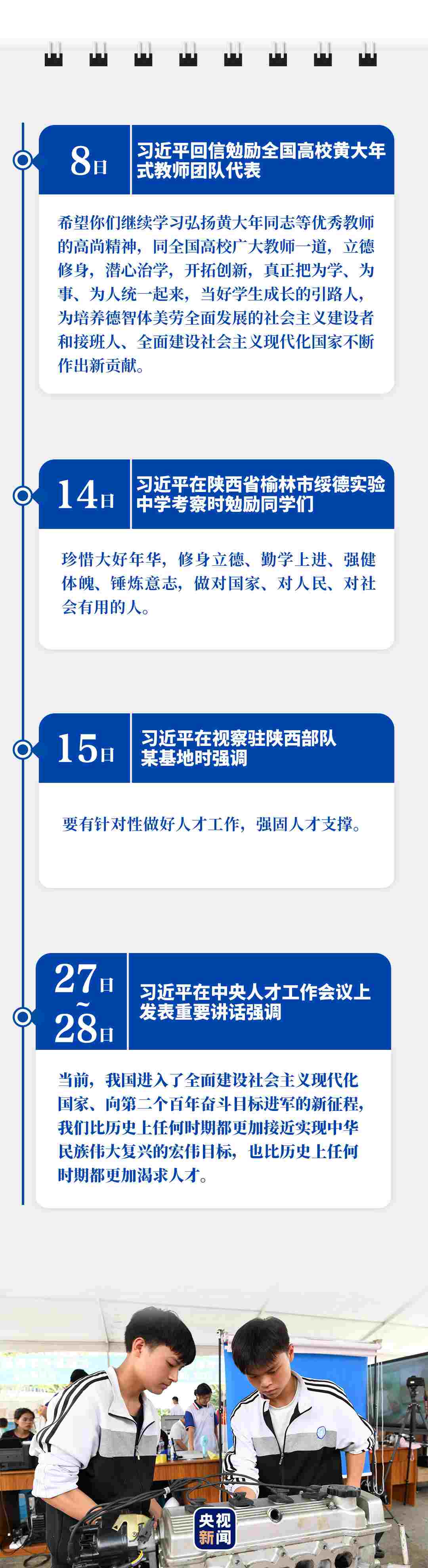 剛剛過(guò)去的9月,給人民英雄敬獻(xiàn)花籃,緬懷英烈、表達(dá)哀思;赴革命舊址考察,強(qiáng)調(diào)堅(jiān)守信仰、堅(jiān)定信念;出席重要會(huì)議,擘畫(huà)為黨育人、為國(guó)育才;開(kāi)展多次“云外交”活動(dòng),主張講信修睦、合作共贏……習(xí)近平行程滿滿,話語(yǔ)鏗鏘。