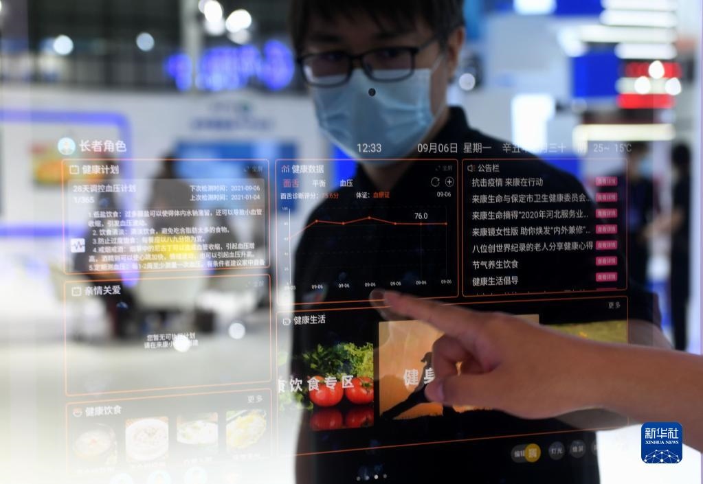 9月6日至8日,2021中國國際數(shù)字經(jīng)濟(jì)博覽會(huì)在河北石家莊舉行。這是工作人員在博覽會(huì)上操作智能鏡子(9月6日攝)。新華社記者 王曉 攝