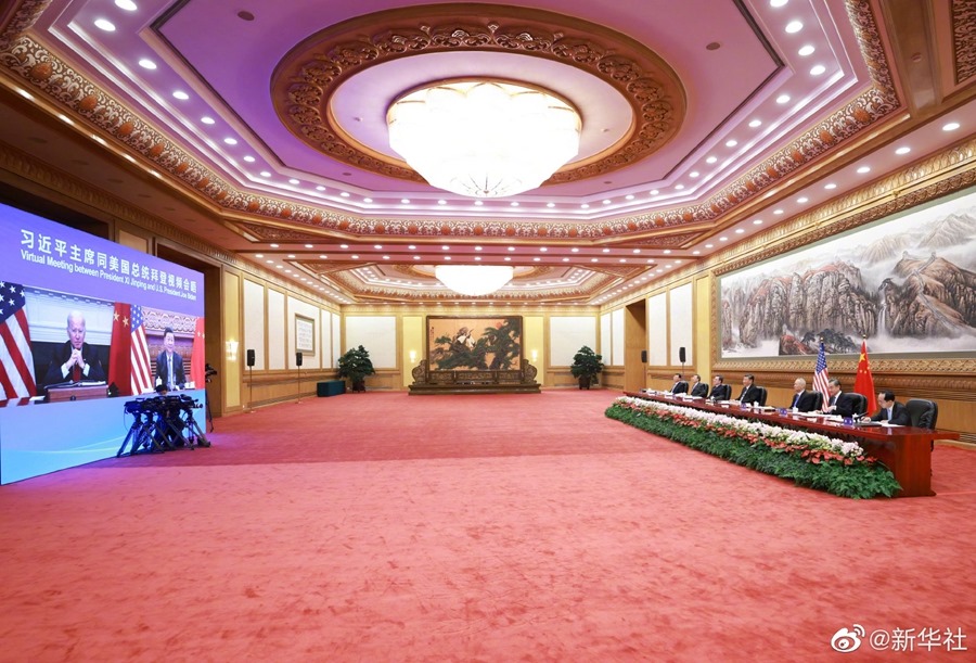 習(xí)近平強(qiáng)調(diào),推動中美各自發(fā)展,維護(hù)和平穩(wěn)定的國際環(huán)境,包括有效應(yīng)對氣候變化、新冠肺炎疫情在內(nèi)的全球性挑戰(zhàn),都需要一個健康穩(wěn)定的中美關(guān)系。中美應(yīng)該相互尊重、和平共處、合作共贏。我愿同總統(tǒng)先生一道,形成共識,積極行動,引領(lǐng)中美關(guān)系積極向前發(fā)展。這是造福兩國人民的需要,也是國際社會的期待。