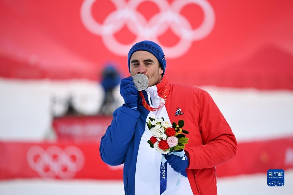 2月7日,高山滑雪男子滑降項目亞軍、法國選手約翰·克拉雷在獎牌頒發(fā)儀式上。新華社記者 陳斌 攝