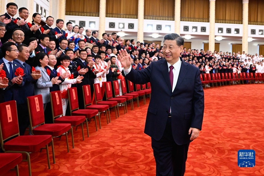 4月8日,北京冬奧會、冬殘奧會總結(jié)表彰大會在北京人民大會堂隆重舉行。習(xí)近平等為北京冬奧會、冬殘奧會突出貢獻(xiàn)個人和突出貢獻(xiàn)集體代表頒獎。新華社記者 李學(xué)仁 攝