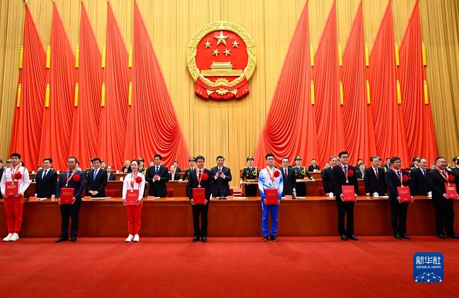4月8日,北京冬奧會、冬殘奧會總結(jié)表彰大會在北京人民大會堂隆重舉行。習(xí)近平等為北京冬奧會、冬殘奧會突出貢獻(xiàn)個人和突出貢獻(xiàn)集體代表頒獎。新華社記者 丁林 攝