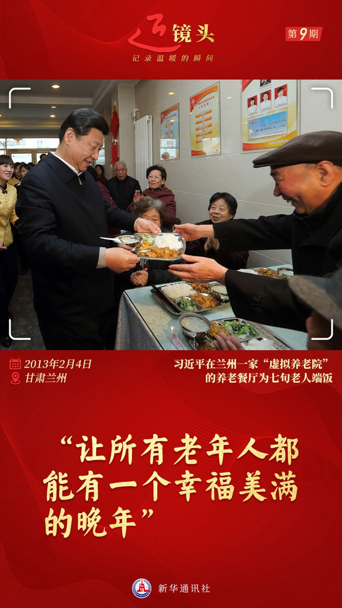 2013年2月,習(xí)近平總書記曾來到這里,詳細(xì)了解虛擬養(yǎng)老院的運(yùn)行情況?!帮埩繅虿粔??”“衛(wèi)生不衛(wèi)生?”“全市有多少這樣的餐廳?”他一一問來,還端起一盤熱氣騰騰的飯菜,送給就餐的老人,向老人們拜年,祝愿他們新春愉快、身體健康、安享晚年。