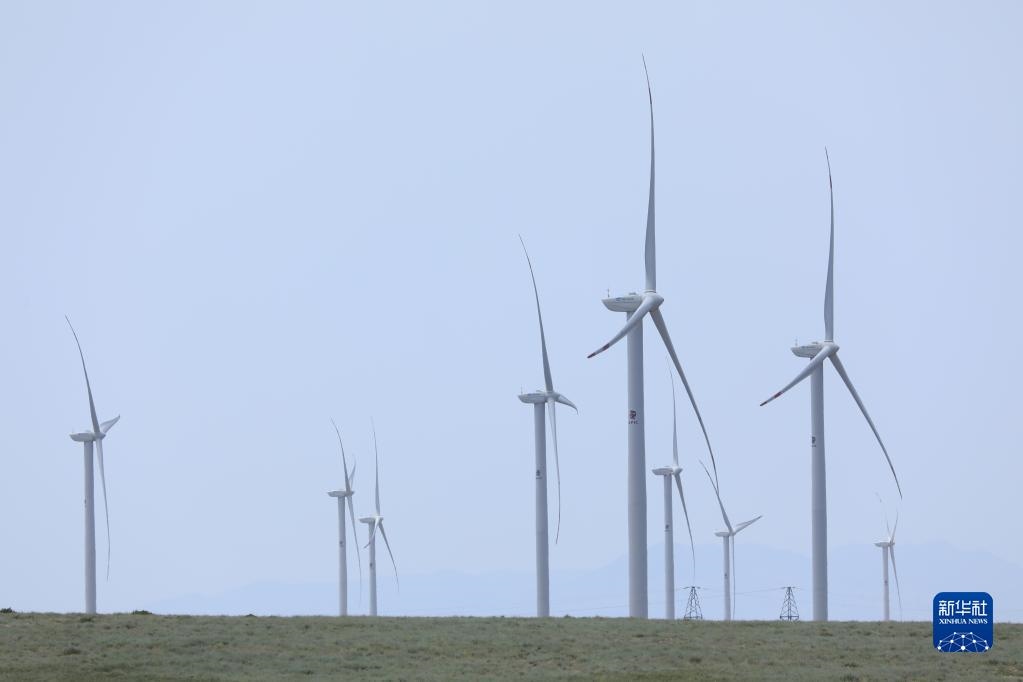 這是2021年5月24日在哈薩克斯坦扎納塔斯拍攝的風(fēng)電場的風(fēng)機。新華社發(fā)(奧斯潘諾夫攝)