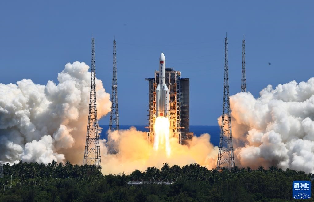 2022年7月24日,搭載問(wèn)天實(shí)驗(yàn)艙的長(zhǎng)征五號(hào)B遙三運(yùn)載火箭,在我國(guó)文昌航天發(fā)射場(chǎng)點(diǎn)火發(fā)射。新華社記者李剛攝