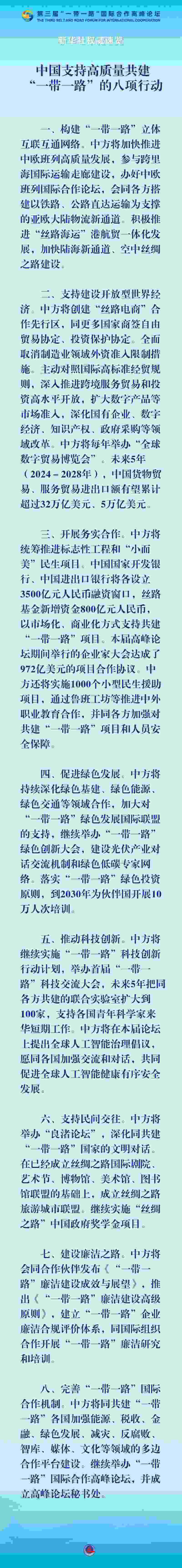 習(xí)近平宣布中國(guó)支持高質(zhì)量共建“一帶一路”的八項(xiàng)行動(dòng) 10月18日,國(guó)家主席習(xí)近平在第三屆“一帶一路”國(guó)際合......