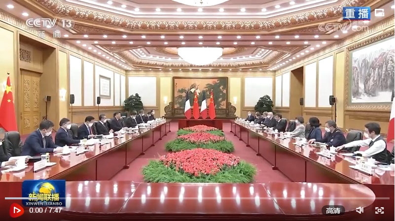 馬克龍表示,我對(duì)3年多前訪華情景記憶猶新,非常高興再次訪華,同習(xí)近平主席共同探討進(jìn)一步提升法中全面戰(zhàn)略伙伴關(guān)系。我完全贊同習(xí)近平主席對(duì)法中關(guān)系的積極評(píng)價(jià)以及就發(fā)展雙邊關(guān)系提出的重要建議。明年法中將共同慶祝建交60周年。60年來,法中關(guān)系保持了穩(wěn)定健康發(fā)展。雖然法中兩國發(fā)展模式不同,但雙方相互尊重,坦誠交流,各領(lǐng)域合作實(shí)現(xiàn)了互利互惠,同時(shí)在合作應(yīng)對(duì)當(dāng)今世界面臨的全球性挑戰(zhàn)方面取得重要進(jìn)展。法方尊重并奉行一個(gè)中國政策。我此次率龐大代表團(tuán)訪華,就是希望同中方加強(qiáng)合作,促進(jìn)人文交流。法方祝賀中方成功舉辦昆明-蒙特利爾《生物多樣性公約》第十五次締約方大會(huì),希望繼續(xù)在氣候變化、糧食安全等問題上同中方密切溝通合作。中方將舉辦第三屆“一帶一路”國際合作高峰論壇,法方愿同中方就此開展合作。法方贊賞中方始終遵守聯(lián)合國憲章宗旨,為解決國際地區(qū)熱點(diǎn)問題發(fā)揮積極作用,期待同中方密切溝通協(xié)作,努力實(shí)現(xiàn)世界的持久和平與穩(wěn)定。