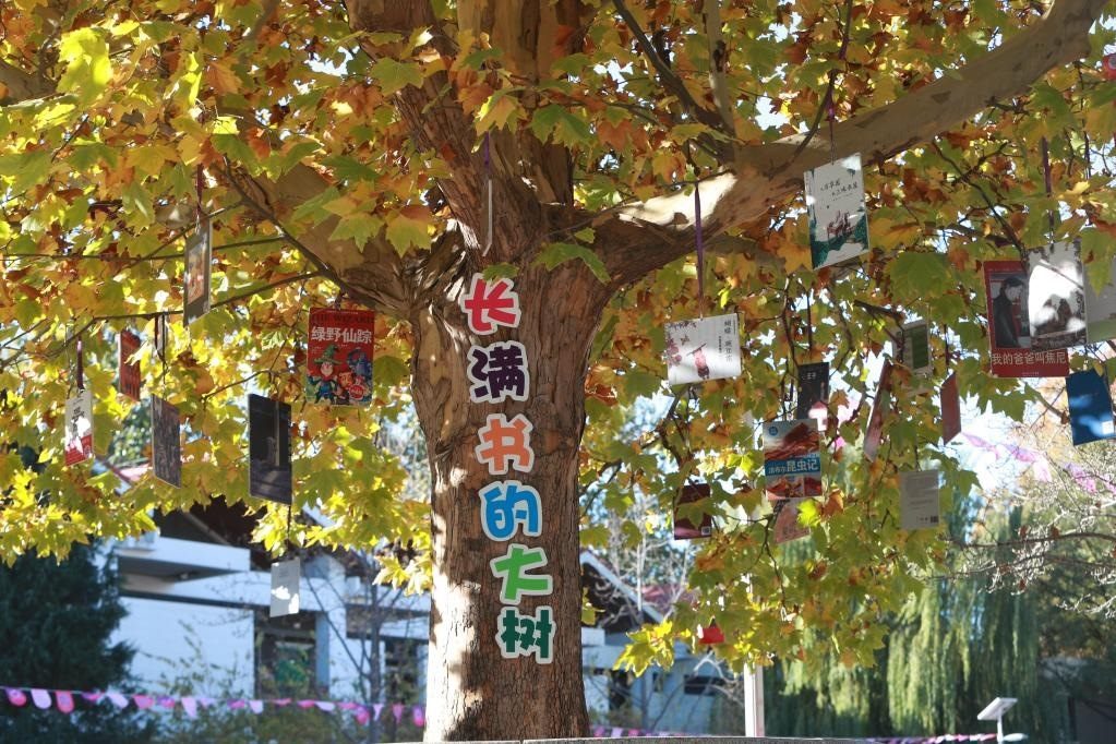 圖為清華附小校園里“長(zhǎng)滿(mǎn)書(shū)的大樹(shù)”。采訪對(duì)象供圖