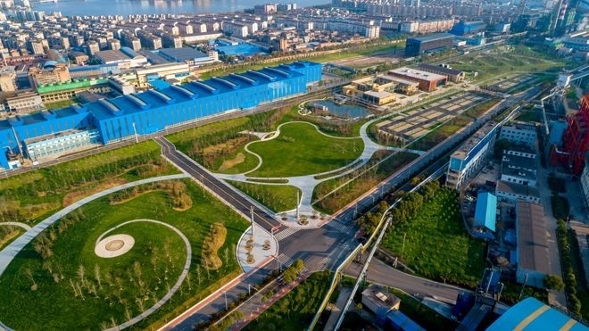 走進(jìn)長江邊的寶武集團(tuán)鄂城鋼鐵有限公司廠區(qū),一片綠意盎然,看不出這是一家有著60多年歷史的鋼鐵廠。街對面是游客中心,掛著2021年12月30日由文旅部頒發(fā)的“AAA國家級旅游景區(qū)”金色牌匾。