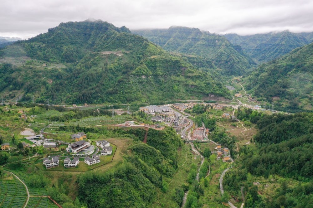 這是重慶市石柱縣中益鄉(xiāng)華溪村景觀(2022年4月14日攝,無(wú)人機(jī)照片)。目前中益鄉(xiāng)擁有中藥材、特色蔬果等支柱產(chǎn)業(yè)。新華社記者 唐奕 攝
