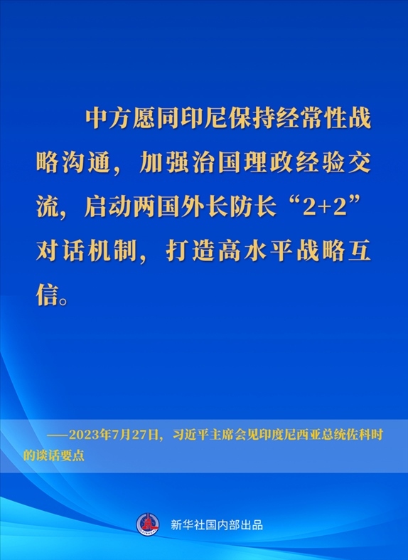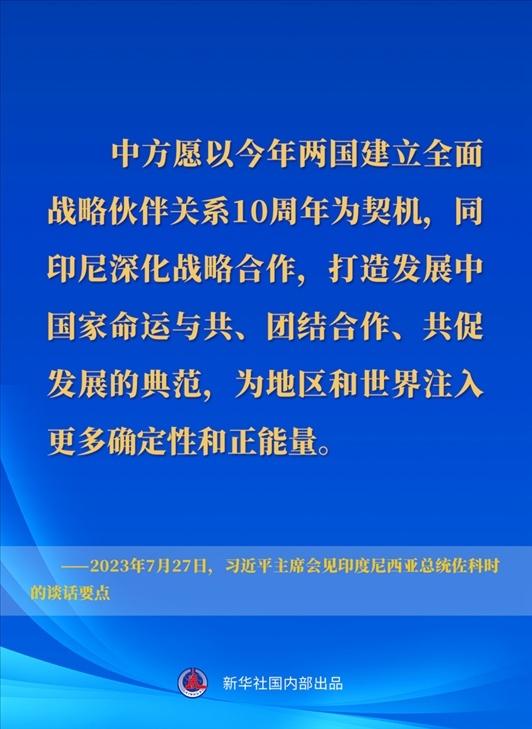 7月27日下午,國(guó)家主席習(xí)近平在成都會(huì)見來華出席第31屆世界大學(xué)生夏季運(yùn)動(dòng)會(huì)開幕式并訪華的印度尼西亞總統(tǒng)佐科。一起來看習(xí)近平主席在會(huì)見時(shí)的談話要點(diǎn)↓