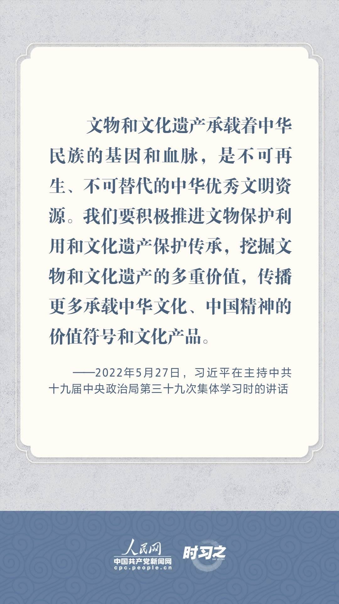 文物承載燦爛文明,傳承歷史文化,維系民族精神。習近平總書記站在中華民族和中華文明永續(xù)傳承的戰(zhàn)略高度,不斷強調保護傳承中華優(yōu)秀傳統(tǒng)文化,為增強文化自信、激發(fā)中華優(yōu)秀傳統(tǒng)文化的生機與活力注入了強大精神動力。
