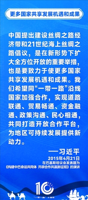 10年前,習(xí)近平主席提出共建“絲綢之路經(jīng)濟(jì)帶”和“21世紀(jì)海上絲綢之路”,即共建“一帶一路”倡議。過去10年來,習(xí)近平主席在多個(gè)場合發(fā)表講話和署名文章,為世界描繪了共建“一帶一路”互聯(lián)互通、合作共贏的宏偉藍(lán)圖。