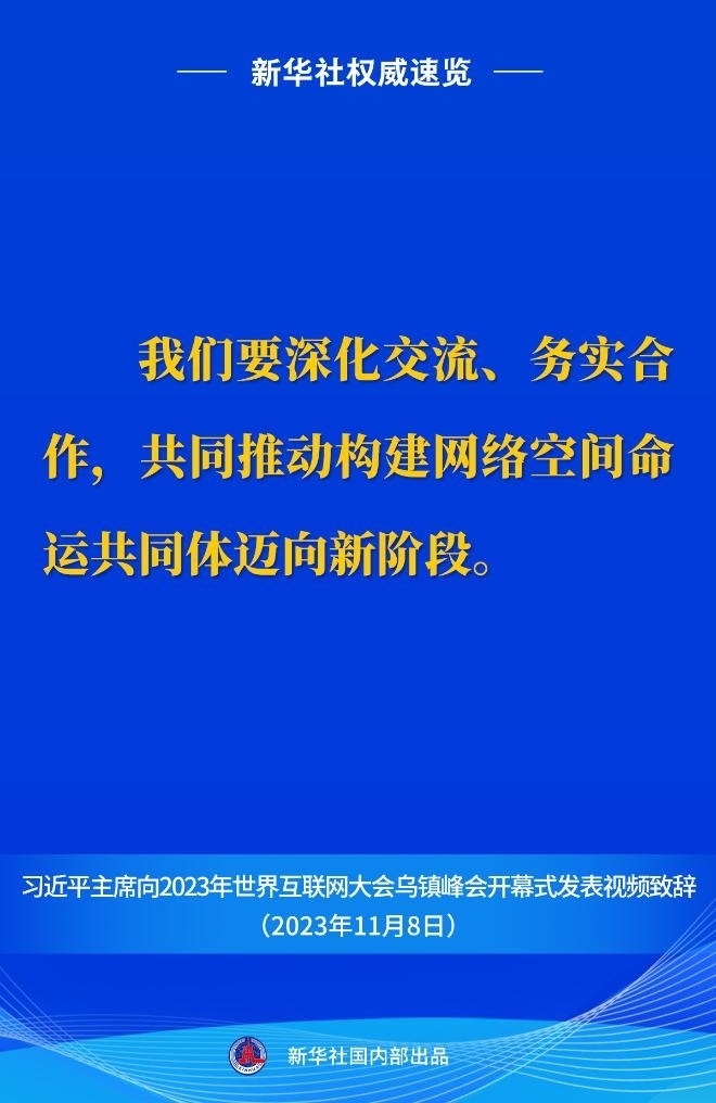 習(xí)近平主席向2023年世界互聯(lián)網(wǎng)大會烏鎮(zhèn)峰會開幕式視頻致辭金句