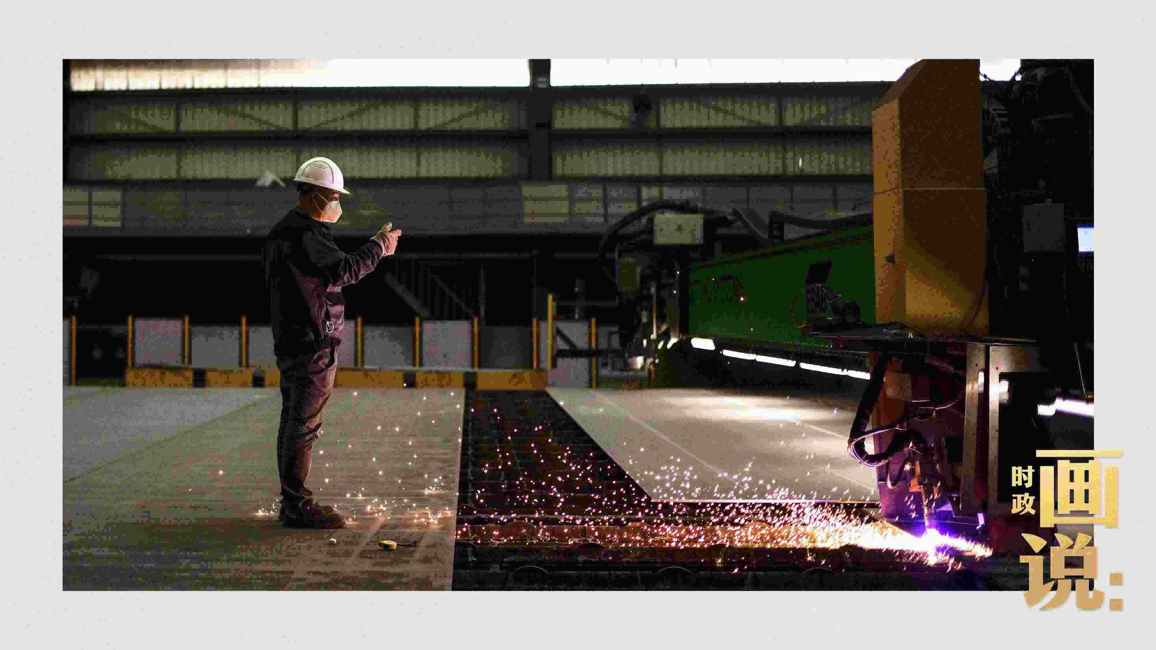 △薄板智能生產(chǎn)中心內(nèi),激光切割機正在將特種鋼板加工成標(biāo)準(zhǔn)零件。浦東新區(qū),上海。