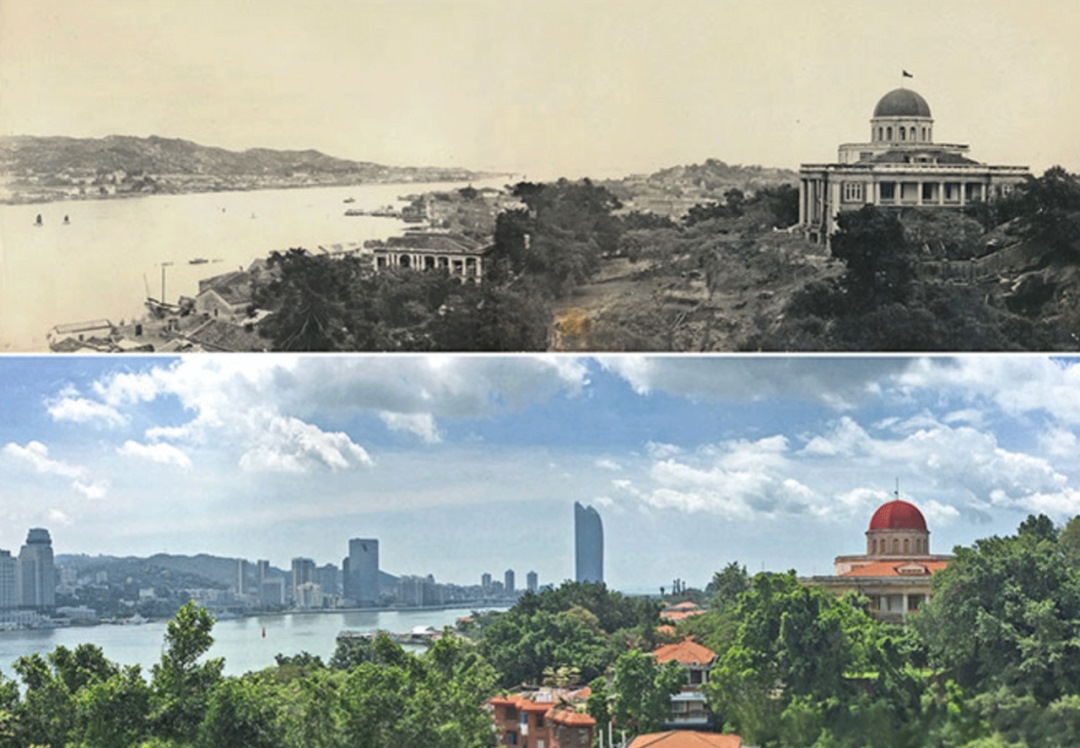 △鼓浪嶼-萬石山風(fēng)景名勝區(qū)的鼓浪嶼“八卦樓”一帶今昔對(duì)比