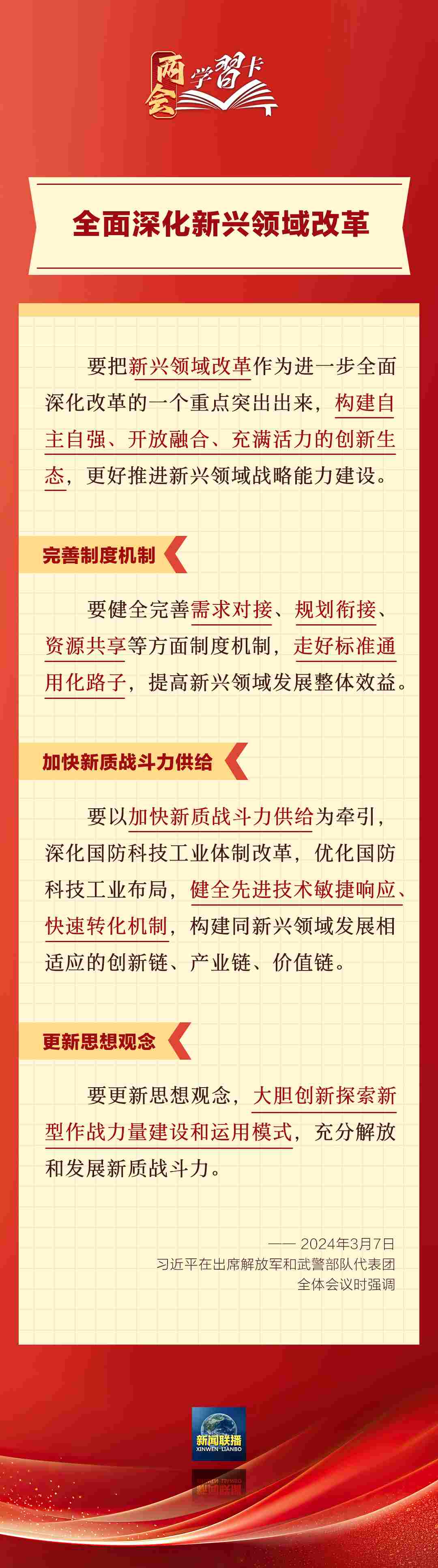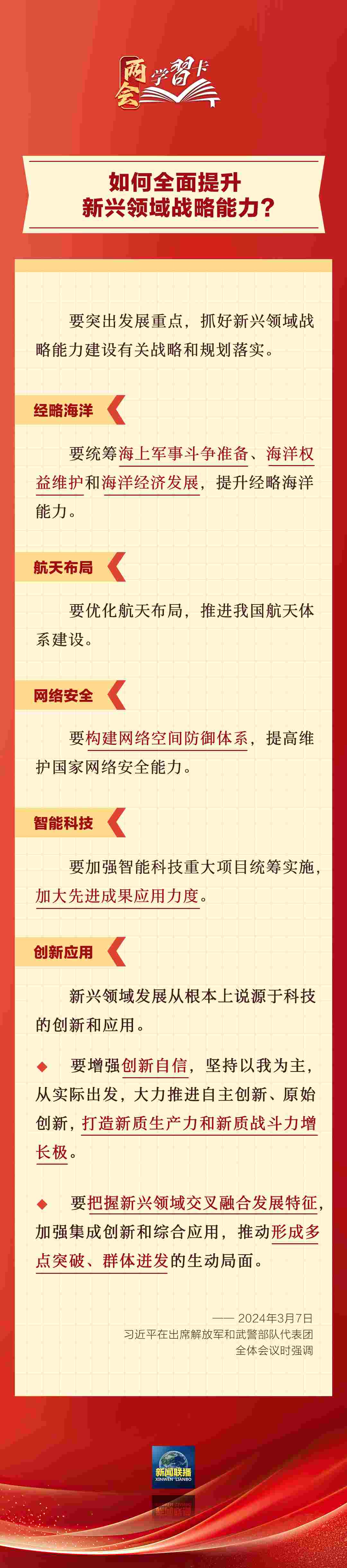 3月7日,習近平在出席解放軍和武警部隊代表團全體會議時強調,強化使命擔當,深化改革創(chuàng)新,全面提升新興領域戰(zhàn)略能力。如何提升新興領域戰(zhàn)略能力?一起學習↓↓↓
