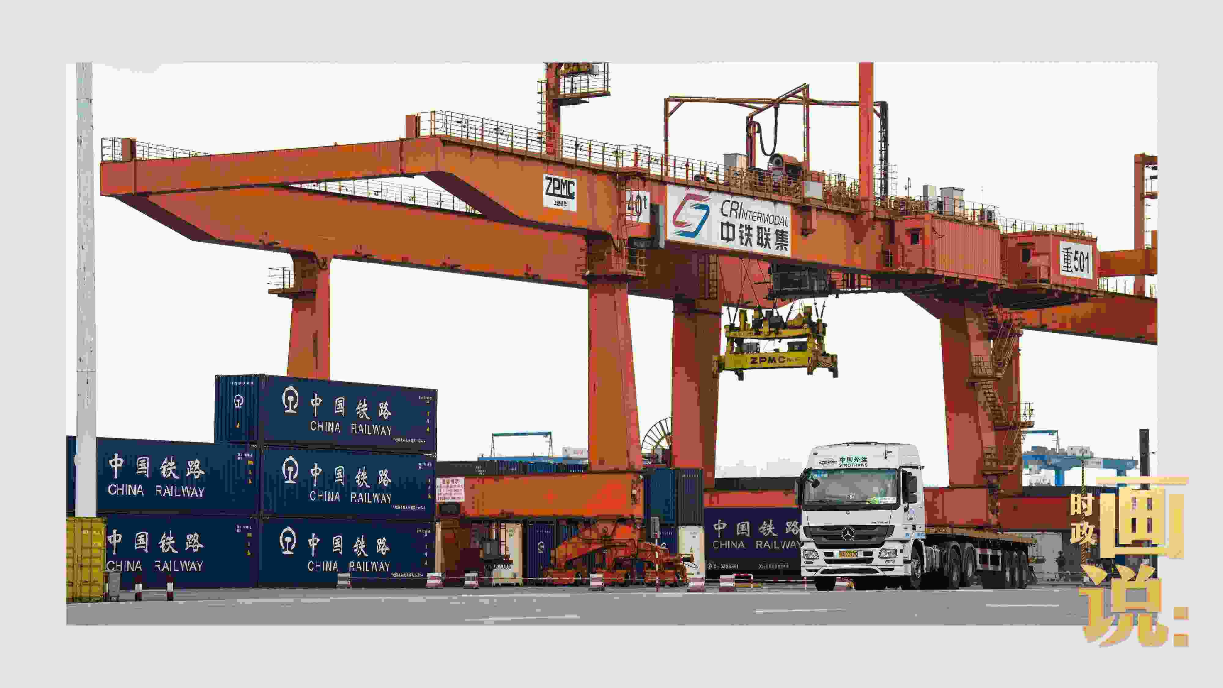 △重慶鐵路集裝箱中心站內,重型貨車等待裝箱。