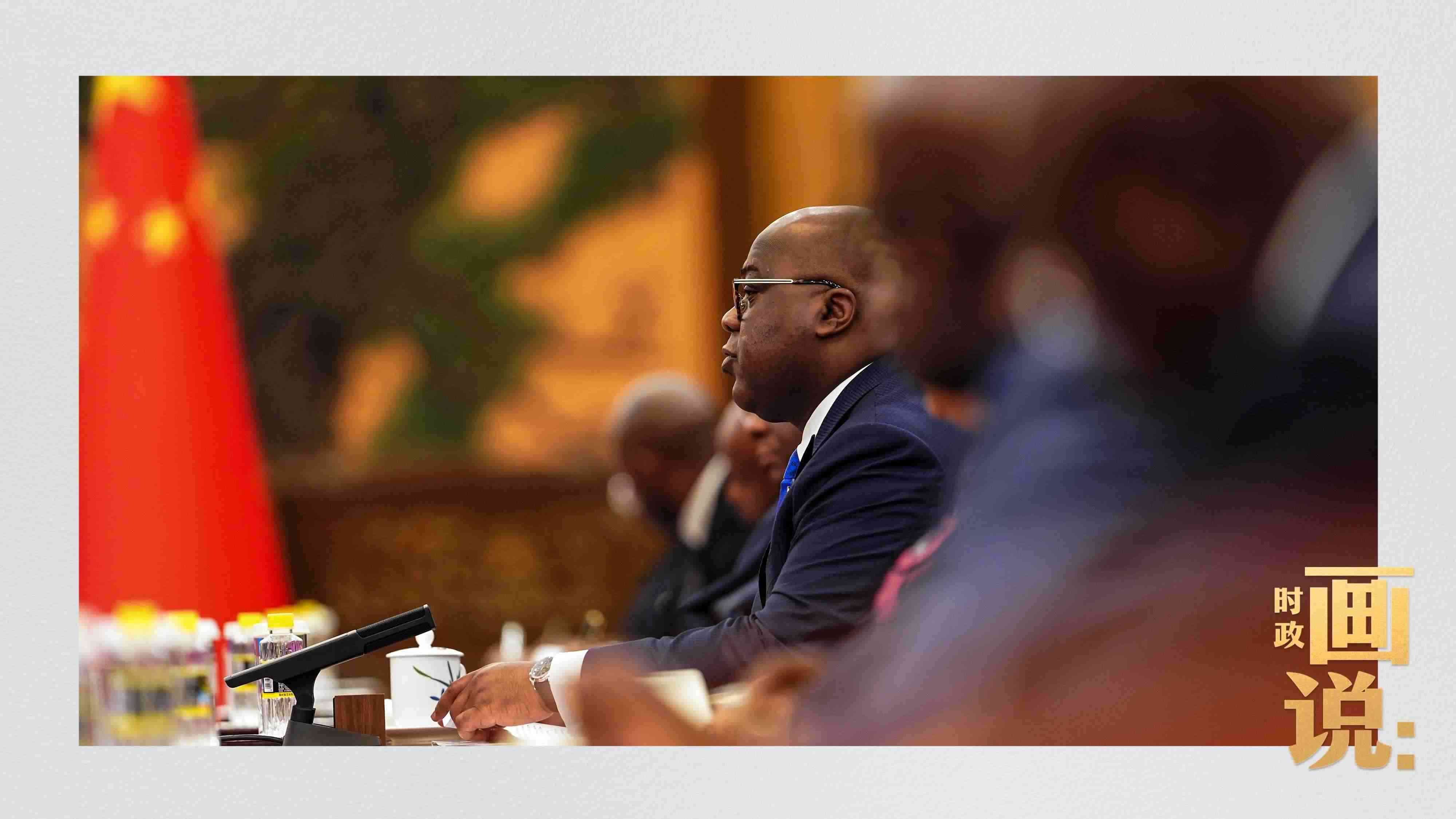 △剛果(金)總統(tǒng)齊塞克迪走向會見廳,這是習(xí)近平主席在峰會期間舉行的首場雙邊會見。