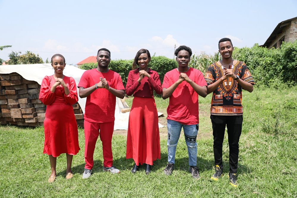 ??2024年2月7日,在盧旺達(dá)南方省卡莫尼地區(qū),盧旺達(dá)青年團(tuán)隊(duì)成員向鏡頭前觀眾送上新春祝福。新華社發(fā)(黃萬(wàn)晴 攝)