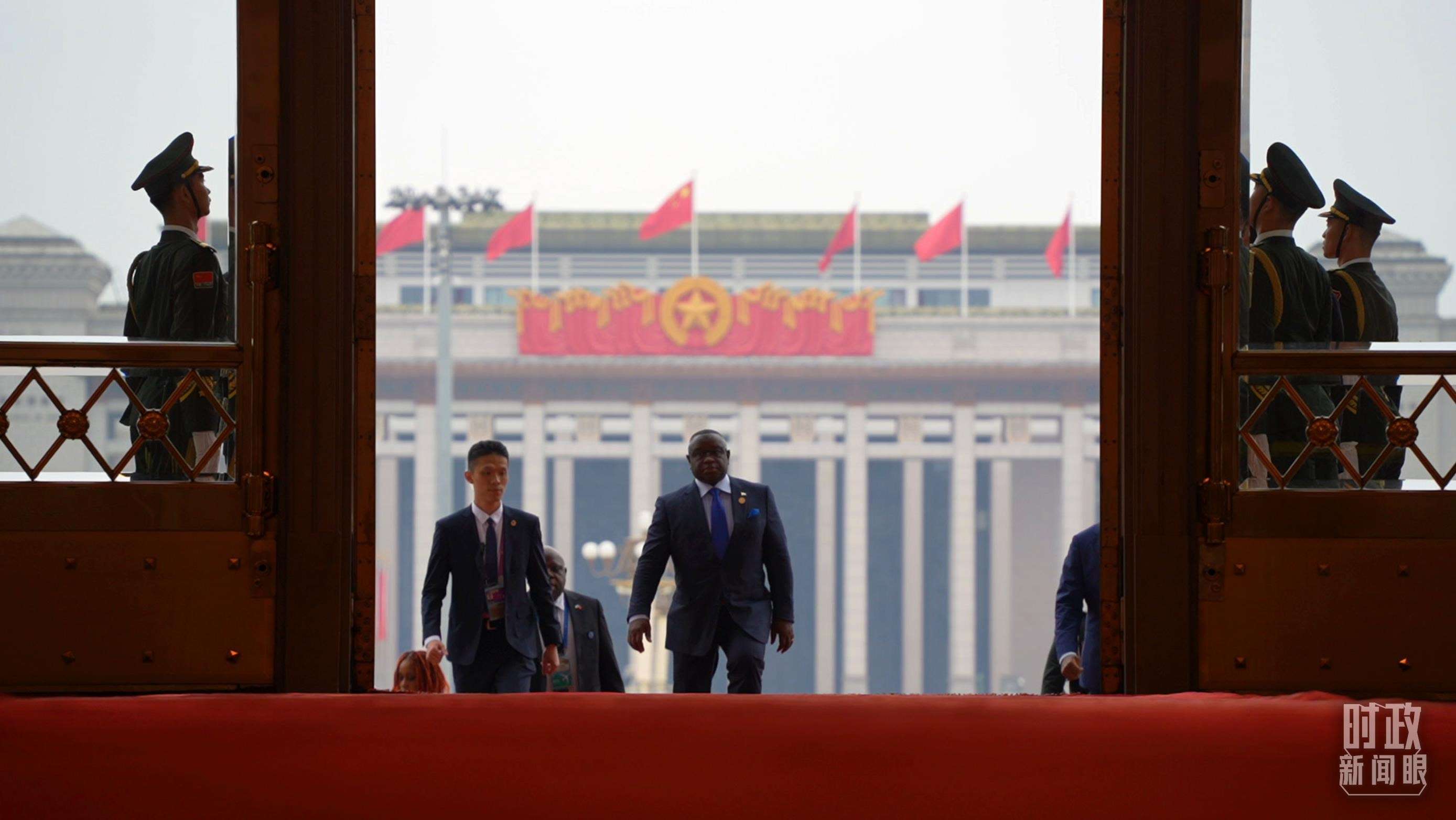 △非洲國家領導人步入人民大會堂。(總臺央視記者趙怡彬拍攝)