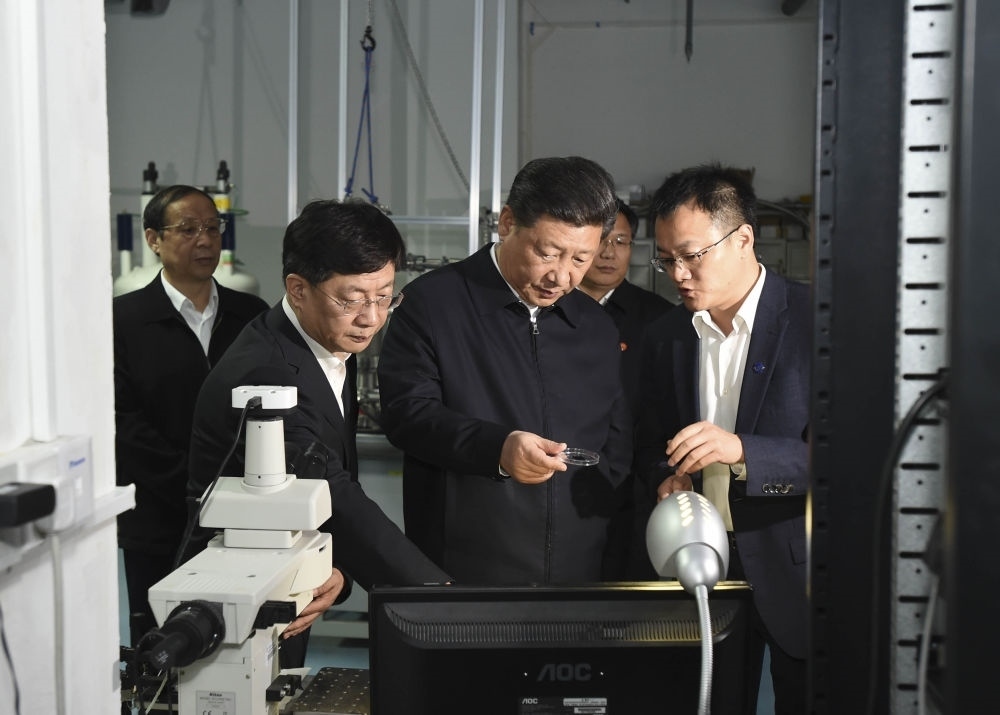 2016年4月26日,習(xí)近平在中國科技大學(xué)近代物理系自旋磁共振實驗室了解科研情況。