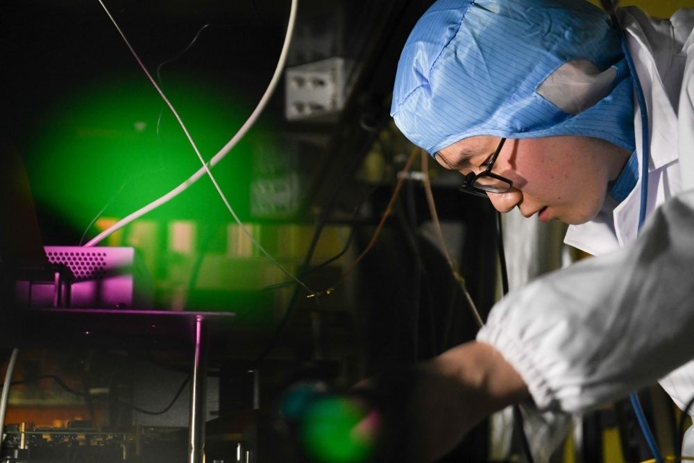 2022年1月31日,中國科學(xué)技術(shù)大學(xué)學(xué)生在中國科學(xué)院量子信息重點實驗室做實驗。