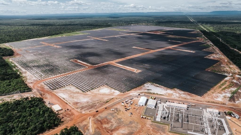這是2024年6月7日在巴西皮奧伊州拍攝的由中國國家電力投資集團(tuán)公司(國家電投)巴西公司投資并主導(dǎo)建設(shè)的馬蘭加圖光伏電站(無人機(jī)照片)。新華社記者 王天聰 攝