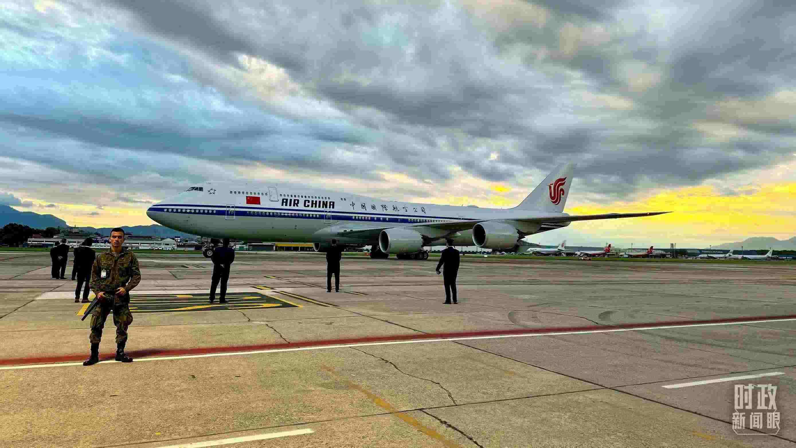當(dāng)?shù)貢r(shí)間11月17日下午,習(xí)主席乘專(zhuān)機(jī)抵達(dá)里約熱內(nèi)盧加里昂空軍基地。巴西政府高級(jí)官員熱情迎接。巴西空軍號(hào)手吹號(hào)致敬,禮兵分列紅毯兩側(cè)。