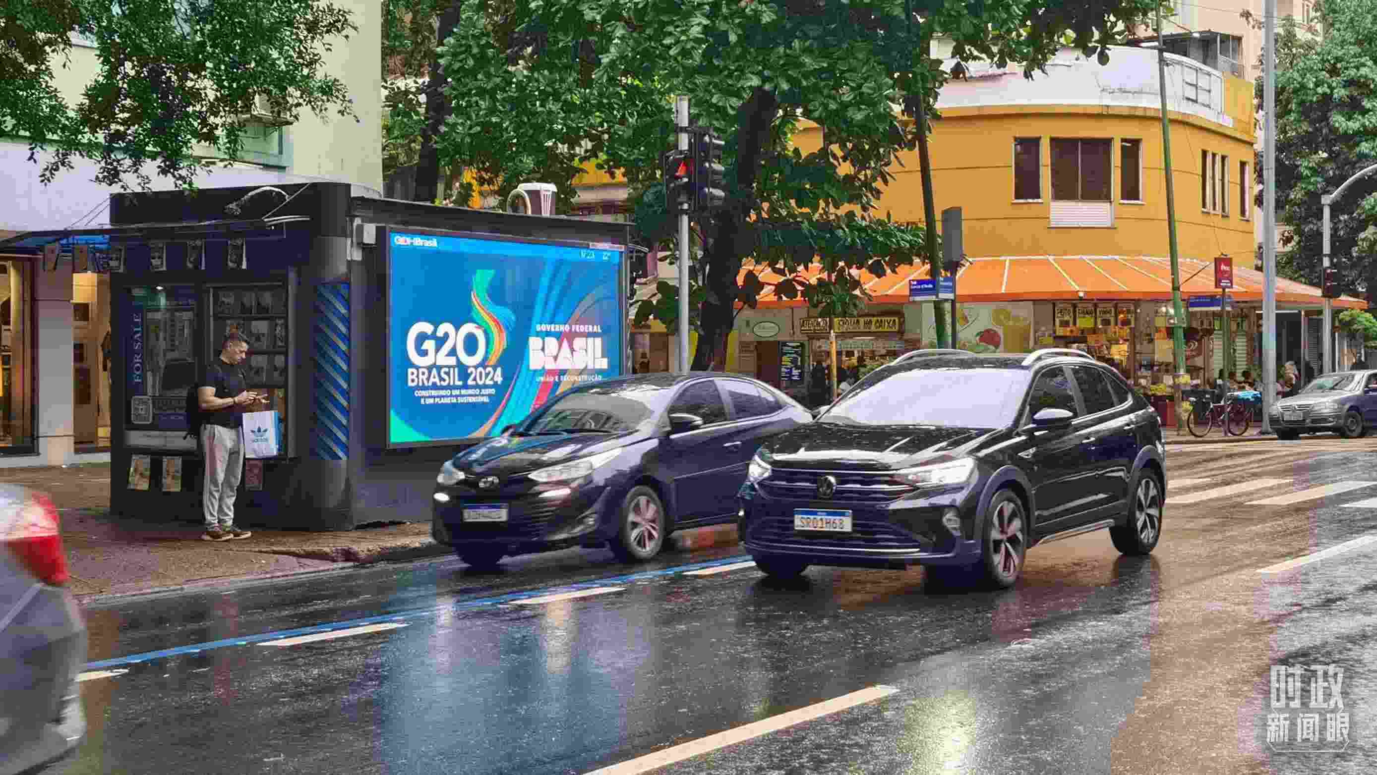 △巴西里約熱內(nèi)盧街頭的G20標(biāo)識(shí)。(總臺(tái)央視記者曹亞星拍攝)