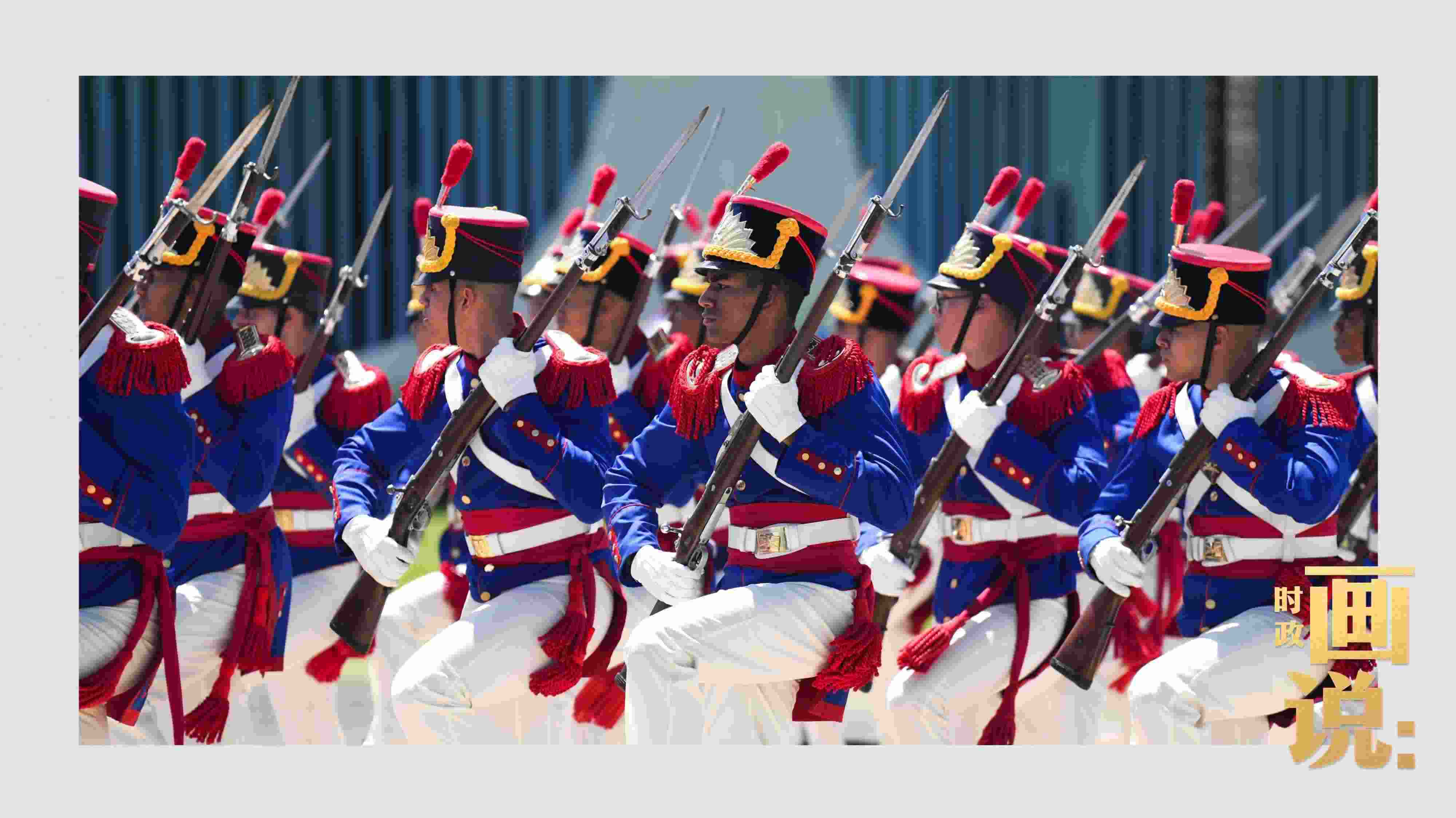 騎兵護衛(wèi)習(xí)近平主席專車抵達(dá)儀式現(xiàn)場,巴西藝術(shù)家用中文深情唱響中國經(jīng)典民歌《我的祖國》,現(xiàn)場氣氛隆重?zé)崃摇?/p>