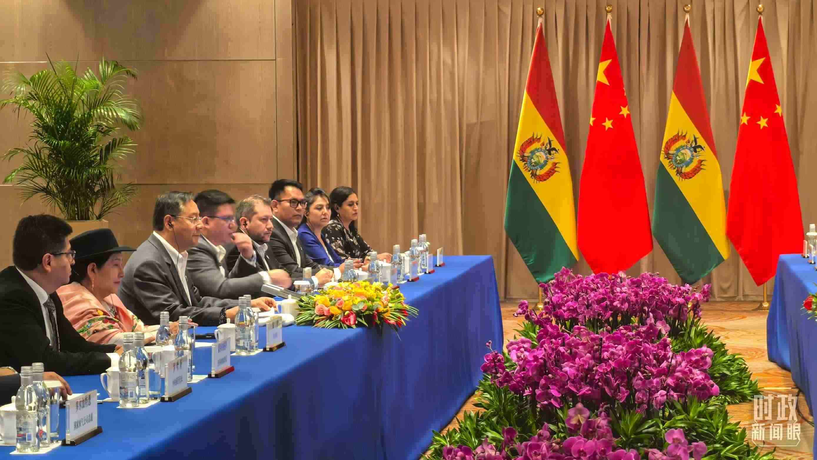 △習(xí)主席會見玻利維亞總統(tǒng)阿爾塞現(xiàn)場。(總臺央廣記者潘毅拍攝)