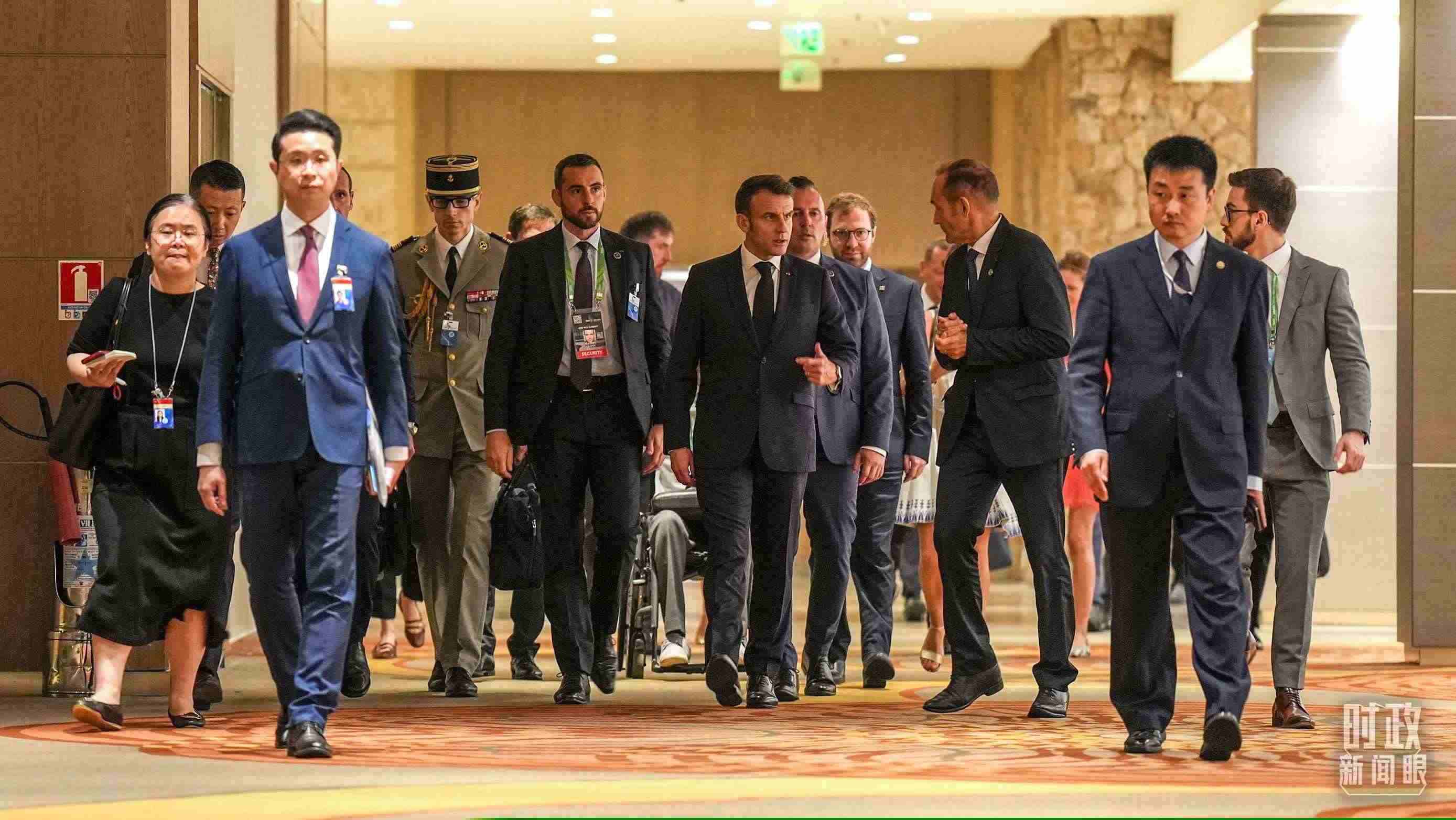 △法國總統(tǒng)馬克龍前往會場。(總臺記者李晉拍攝)