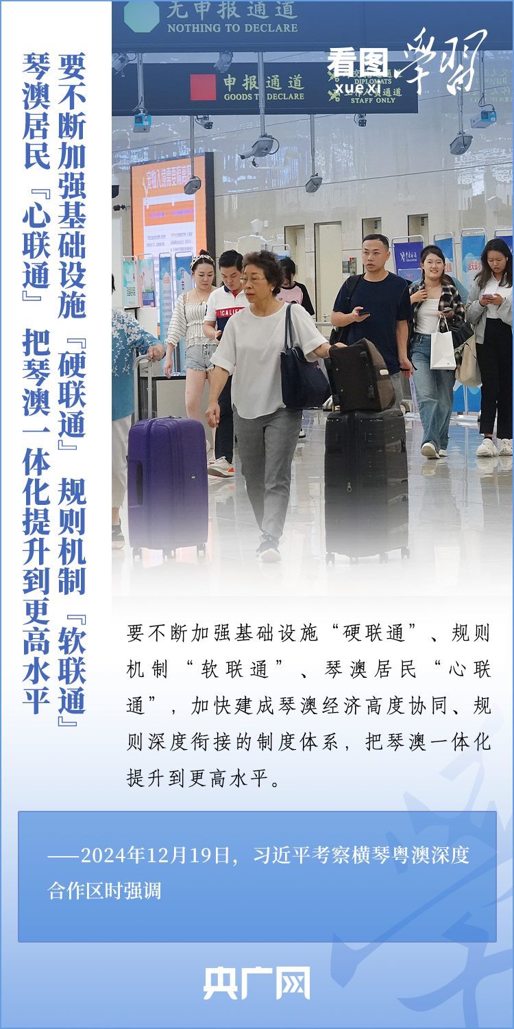 橫琴地處廣東珠海南端,與澳門一水之隔,是促進(jìn)澳門經(jīng)濟(jì)適度多元發(fā)展的重要平臺(tái)。12月19日,習(xí)近平總書記來到橫琴粵澳深度合作區(qū)考察,同居住在這里的市民代表、青年創(chuàng)業(yè)者代表以及參與合作區(qū)規(guī)劃、建設(shè)、管理、服務(wù)等各方面代表親切交流??倳泴献鲄^(qū)各項(xiàng)工作取得的進(jìn)展給予肯定,勉勵(lì)大家牢記開發(fā)橫琴的初心,在新的起點(diǎn)上,銳意改革、聚力攻堅(jiān),攜手開創(chuàng)合作區(qū)建設(shè)新局面。一起來學(xué)習(xí)!