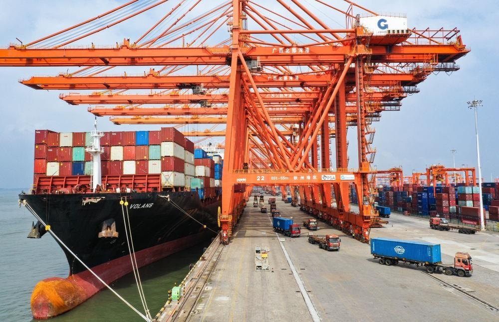 △廣西欽州港是北部灣港的組成部分,也是中國西南地區(qū)通往東盟的重要出???。