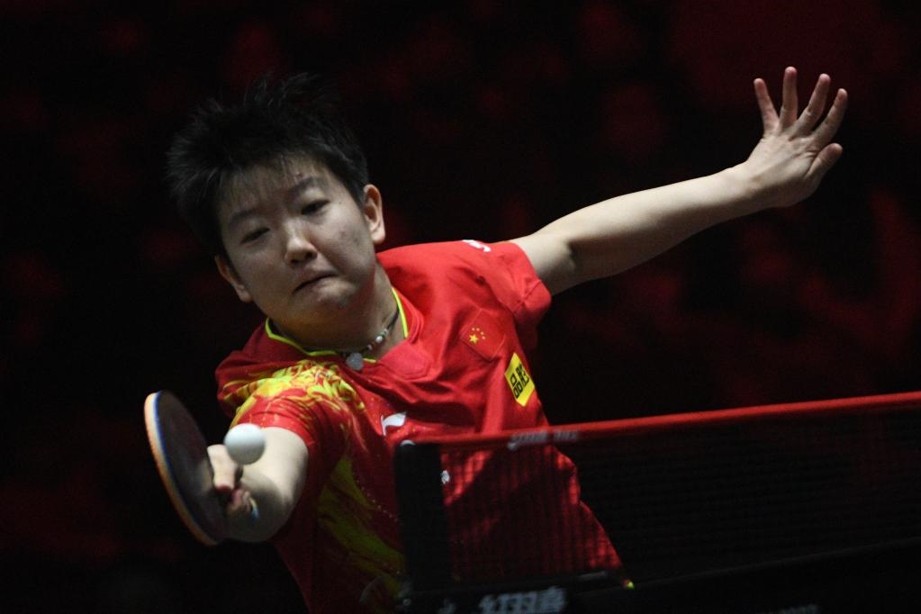 3月17日,孫穎莎在比賽中回球。新華社發(fā)(鄧智煒攝)