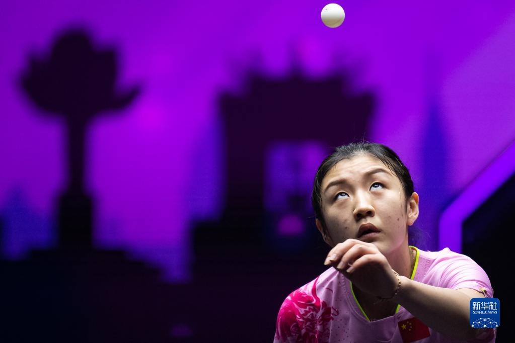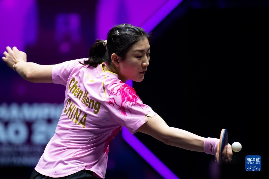 10月19日,陳夢(mèng)在比賽中回球。新華社記者 張金加 攝